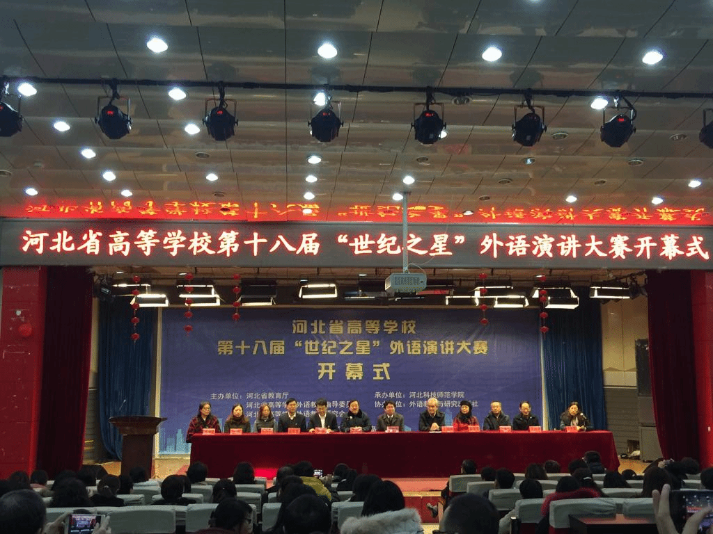 2017年11月18日,由河北省教育厅、河北省高等学校外语教学指导委员会主办的河北省高等学校第十八届“世纪之星”外语演讲大赛在河北科技师范学院开发区校区隆重举行。来自全省102所高等学校的427名优秀选手参加了本届比赛。