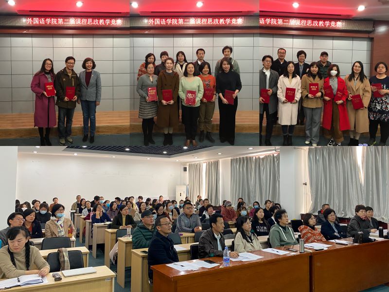 参赛教师结合“课程思政”的教学目标、教学内容和教学方法设计对教学各个环节进行说课,并进行现场教学展示。由学院本科教学指导委员会10位教授组成的评审团根据选手在教学设计、教学实施、教学效果、教师素养与创新特色等方面进行评审打分。比赛现场气氛热烈,不时爆发出热烈掌声。经过近5个小时的激烈角逐,最终英语系张宇老师团队、大英二系王珍珍老师团队获得一等奖;王珺辉老师5个团队获得二等奖、王大宝老师等8个团队获得三等奖。赛后于建平教授、张秀芹教授代表评审团作了点评。她们肯定了参赛团队的努力和成果,并就参赛作品在教学内容、课件制作、思政要素挖掘、融入时机等方面存在的不足提出了改进意见。此次竞赛一等奖获奖教师团队将代表学院参加学校“课程思政”教学竞赛。