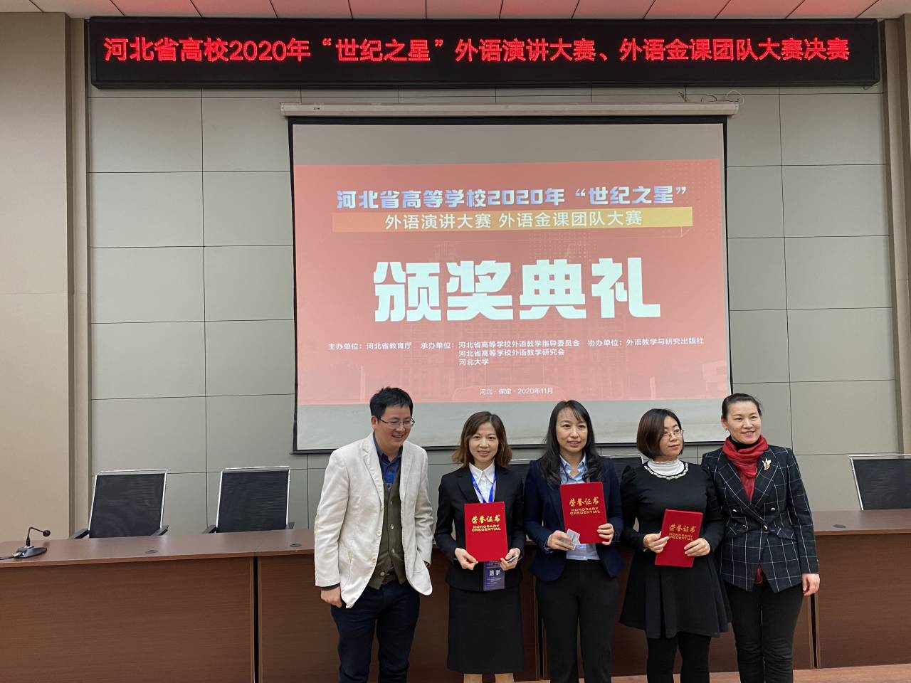 2020年11月14日2020年河北省高等学校“世纪之星”外语金课团队大赛在河北大学落下帷幕。我校米兰MILAN(中国)申秀逸教授带领由日语系黄萍、郑媛媛、孙立成三位老师组成的教学团队,经过初赛、复赛的激烈角逐进入决赛并获得全省日语专业本科组一等奖。