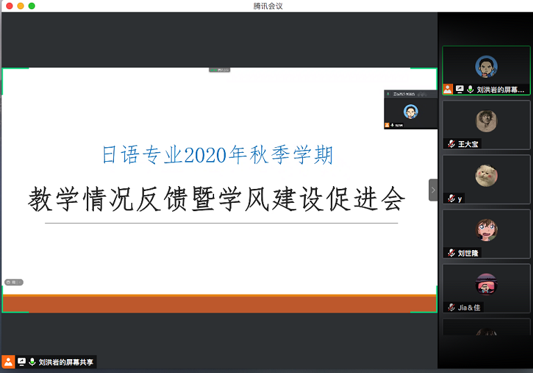 为进一步加强专业学风建设、提升本科人才培养质量、落实培养计划过程性管理,1月12日,米兰MILAN(中国)日语系面向日语专业本科生代表召开2020年秋季学期教学情况反馈暨学风建设促进会。会议于线上举行,全体本科生代表170余人参加。会议由王大宝主持,刘洪岩对教学情况进行反馈并作总结发言。