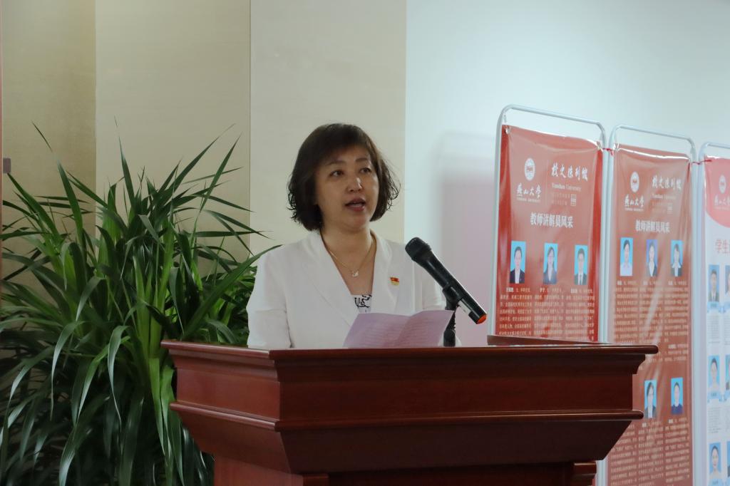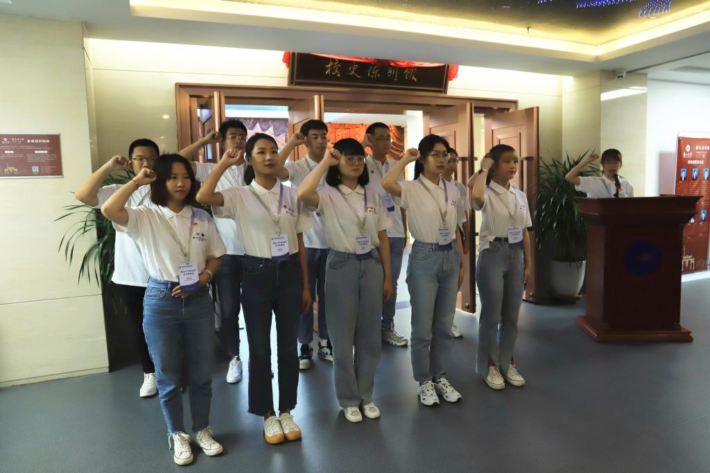 仪式之后,外文讲解员带领全体师生党员代表参观了校史馆。外文讲解员们发音标准、表达流畅,赢得了现场一致称赞。