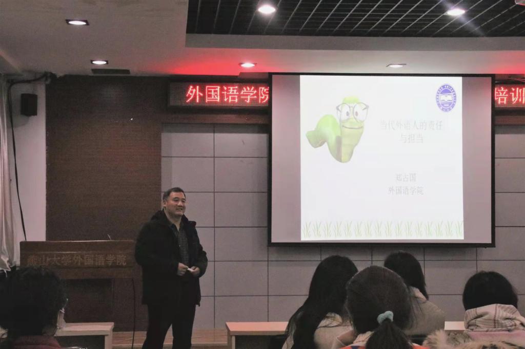 郑老师从外语教学的内容与目的、外语教育的历史重任、当代外语人的责任和如何讲好中国故事四个方面诠释了当代外语人的责任与担当。米兰网页版当代外语人的责任,郑老师指出作为外语学习者,应当拥有明确的政治立场、浓厚的家国情怀、开阔的国际视野、强大的综合能力以及积极向上的心态。郑老师通过自身经历,丰富的事例,为同学讲解如何讲好中国故事:找到共同价值、选择合适方式、寻找恰当时机。讲座最后,郑老师分享了他在托列多大学孔子学院的工作经历,鼓励同学们作为外语学习者,不仅要树立终身学习的理念,更要有向世界传播中国声音的责任和担当。