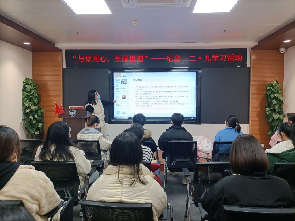 此次活动有8名党员学生介绍了自己所阅读的书籍,分享了读书带给自己的收获与心得。其中,王繁忙同学为大家所推荐的书籍为《共产党宣言》,他表示通过学习重温这本书籍,从中领略了伟人的人格魅力、崇高精神和光辉思想,从中汲取了奋勇前行的理论力量、精神力量、思想力量。赵一涵同学向大家推荐了《习近平的七年知青岁月》一书,这本书记述了四十多年前习近平总书记在梁家河知青时期的艰苦生活和成长历程,反映了青年习近平重感情、讲情义,勤于思考、善于思辨,志存高远、知行合一的品格风范。随后,宋贝凝、房云硕、薛雅惠、刘明慧、何盼、谢柃琪等同学也分别为大家推荐了《马克思恩格斯选集》、《邓小平的三起三落》、《青春之歌》等书,大家从不同的角度和侧面展示了读书给同学们的学习、工作、生活所带来的不可替代的指导价值和现实意义,同时也展现了学生党员的好学精神和思辨能力。读书分享活动之后,同学们一起观看了《大抗战——“一二九运动”》视频,对一二九运动有了更加深刻的了解和认识,并激发了大家知史立志、爱国爱党的热情。