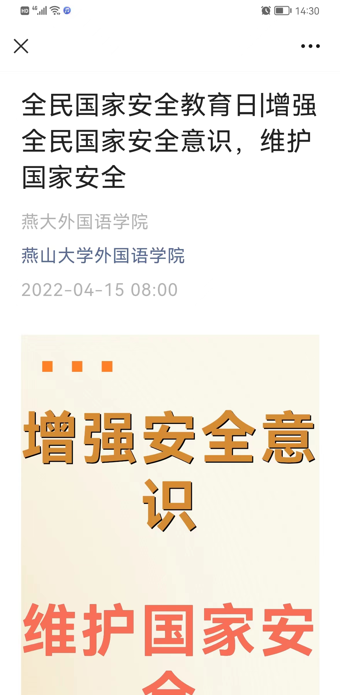 本次活动的开展,强化了全民国家安全宣传教育日的活动氛围,帮助了广大师生进一步了解国家安全相关法律法规,增强了广大师生的国家安全意识,得到了师生的高度认可和赞扬。下一步,学院将以国家安全教育日为契机,不断创新宣传内容、宣传方式、宣传载体,营造全民关注国家安全的良好氛围,以实际行动迎接党的二十大胜利召开。