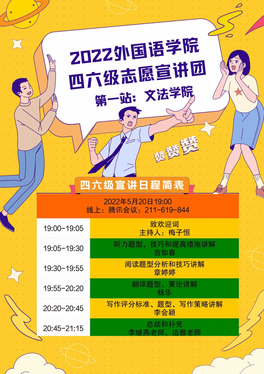为助力燕大学子备战四六级,向同学们提供一个高效、务实的学习平台,强化我校学生的英语学习意识,提高我校学生的英语学习能力,助力我校营造高品味、多元化的校园文化氛围,建设优良学风。米兰MILAN(中国)自2021年起面向全校学生开展四六级宣讲活动。宣讲团主要由米兰MILAN(中国)公共英语第二党支部优秀教师团队与学院研究生会优秀学生志愿者组成,每位志愿者都经过老师们的严格考核以及专业培训。