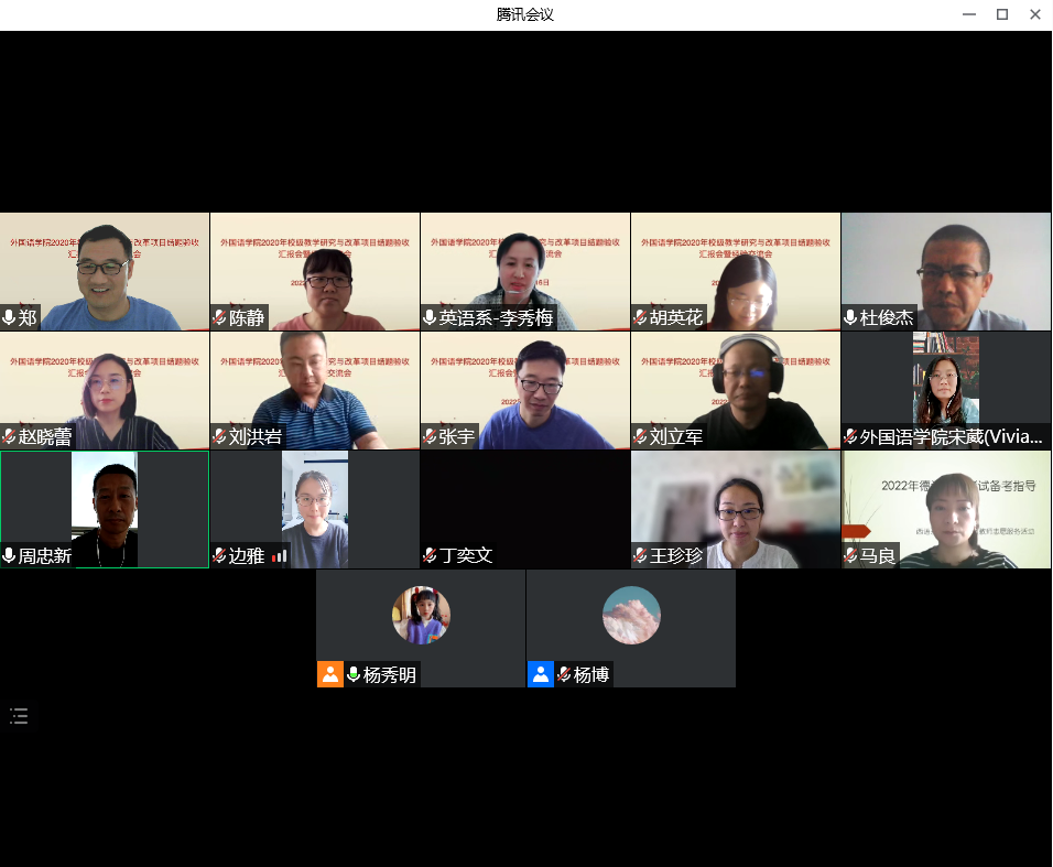 答辩汇报交流会围绕项目的研究内容、项目完成情况、研究成果及实践运用情况及效果评价展开,项目负责人对验收项目做了深入浅出的讲解,专家评委肯定了老师们研究成果并给出了问题及修改意见,最终推选出陈静老师的《综合英语III课程思政教学改革与实践探索》项目为校级教改优秀结题项目,其他项目全部结题通过。