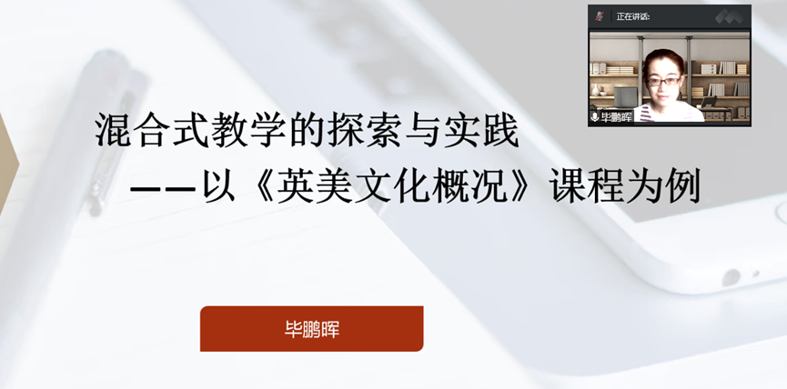 毕鹏晖老师主要研究方向为英语信息化教学,主持教育部社科基金项目1项和省级教改项目3项,研究成果荣获河北省高等教育科研成果二等奖。她结合自身混合式教学实践,与参会教师分享在混合式教学中如何开展行动研究。她通过观察发现教学问题,利用后台教学行为数据分析问题原因,在对教学问题反思和改进中创新混合式教学模式和形成性评价。