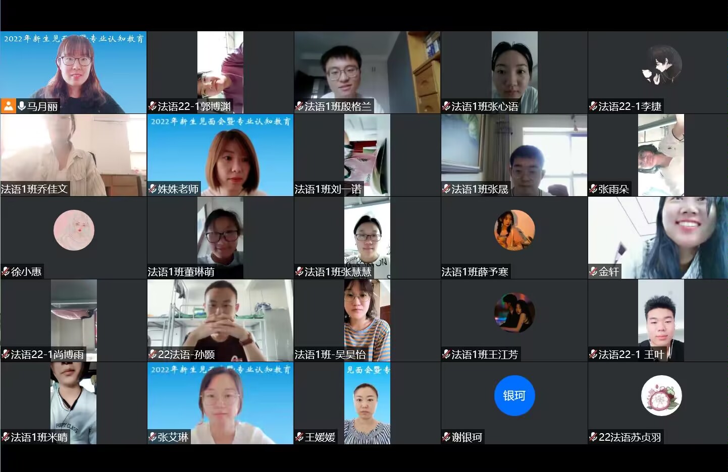 为帮助2022级法语专业的新生尽快地适应大学的学习生活,同时加强对本专业学习及未来职业规划的了解,2022年9月3日上午9点,法语专业组织了新生见面会暨专业认知教育活动。根据相关疫情防控要求,本次活动通过腾讯会议在线上举办。活动由法语专业负责人马月丽老师主持,全体法语专业老师及22级法语专业新生参加。