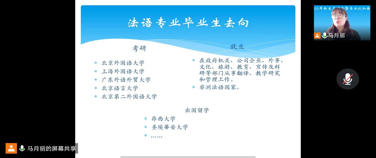法语专业讲座由法语专业负责人马月丽老师主持,全体法语专业老师参与。老师们讲述了法语专业毕业生的去向,重点围绕考研、就业和出国留学三个方面逐一分析论述。米兰网页版出国留学方面,马老师提出诚恳的建议,建议同学们可发掘各种资源,收集相关信息,拓展留学途径。同时建议同学们要充分利用大学时光,多参加实践活动,积累实践经验,切实利用外语及其专业领域知识为自己开拓一片美好的未来。