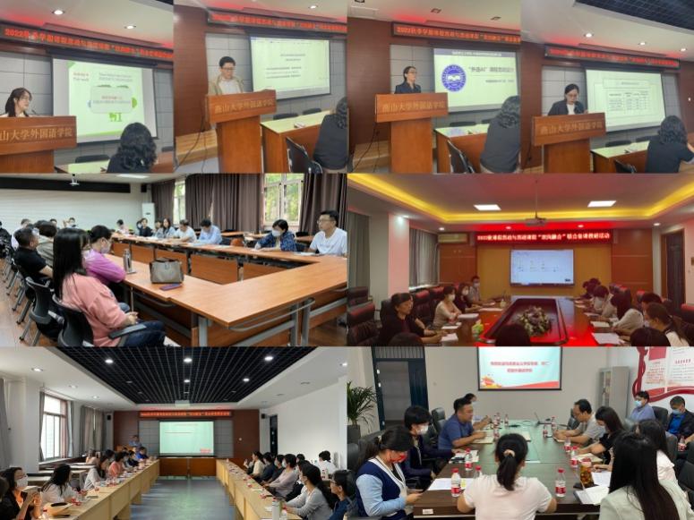 此次联合备课分为英语组、日语组、西语组、公外组4组,共有9名教师代表进行了课程思政教学设计案例分享,之后由马克思主义学院的各位老师进行点评,同时也提出了一些建议和思考。如在外语教学中如何引导学生对西方文化的态度;如何将批判性与建设性相结合;语言类课程应该在历史观、文化观、价值观、民族观上达到何种高度;又如何树立我国文化价值观的优越性等。同时指出,课程思政首先应正确理解与认识其含义,要将外语学科的思政优势发挥好,更要在开展课程思政时更要注意“因课制宜、准确挖掘思政元素、处理好学术性与政治性的关系并明确将政治性放在首位”这三点。