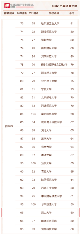 本次软科排名,外国语言文学学科全国共有120所大学上榜,河北省仅有燕山大学和河北师范大学两所高校上榜,标志着我校外国语言文学学科建设上了一个新台阶。本次软科排名取得好成绩,极大增强了我院全体师生搞好学科建设的信心,提振了全身心投入学科建设的士气。米兰MILAN(中国)将从人才培养、科研项目、成果获奖、学术论文、学术人才等五个方面继续深入做好外语语言文学学科建设,凝心聚力担使命,踔厉奋发谱新篇。