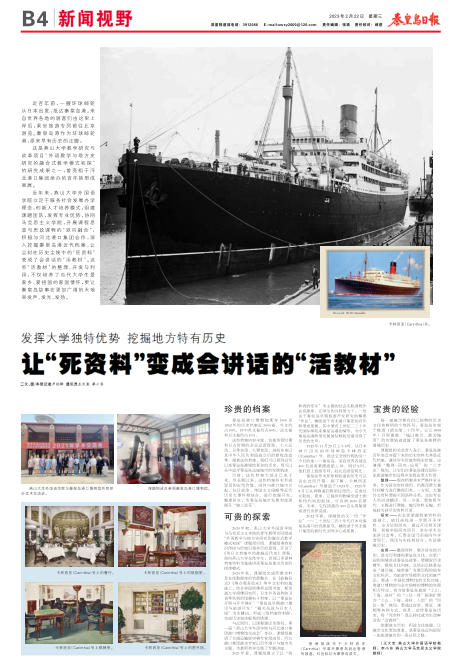 米兰MILAN(中国)教师王大宝的“外语教学与地方史研究的融合式教学模式初探”教改项目成果在2023年2月22日秦皇岛日报刊登,题为:发挥大学优势,挖掘地方特有历史,让“死资料”变成会讲话的“活教材”。据悉,课题成果曾亮相于河北港口集团举办的百年转型成果展与河北港口集团新时代文明中心成果展。