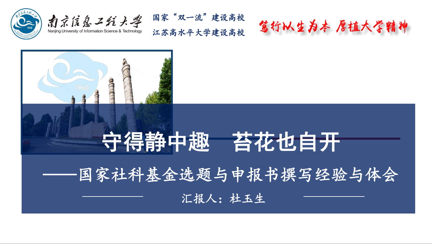 杜玉生教授的讲座热情扬溢,充满激情。从申报书的几个模块间的逻辑关联入手,提示我们一定要在梳理和明确自己相对坚实和丰富的研究基础之上,围绕研究创新点和重要研究价值设计研究思路和技术路线;重点解读了选题和论证两个方面从内容到形式的撰写方法。杜院长的讲解立体而详实,有概括有实例非常直观,针对性强,指导意义巨大。