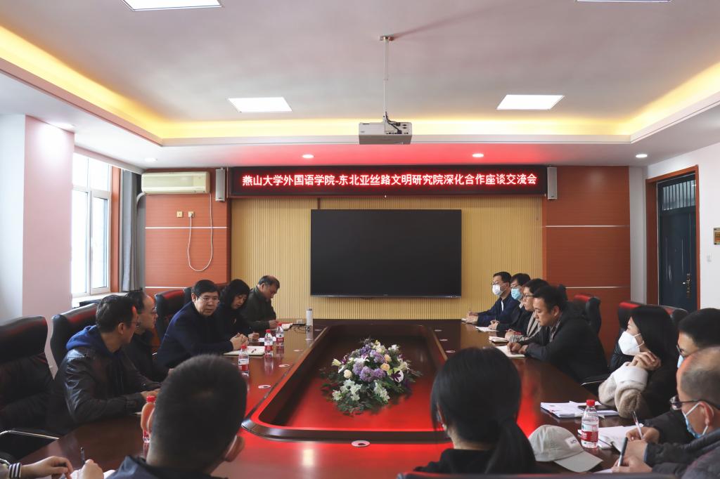 2023年4月11日下午,燕山大学东北亚丝路文明研究院院长邓树平一行来我院就开展科研、实习、教学、智库建设和党建等工作开展交流座谈。我院领导班子成员和各系、专业主任和部分教师代表参加了本次座谈会。