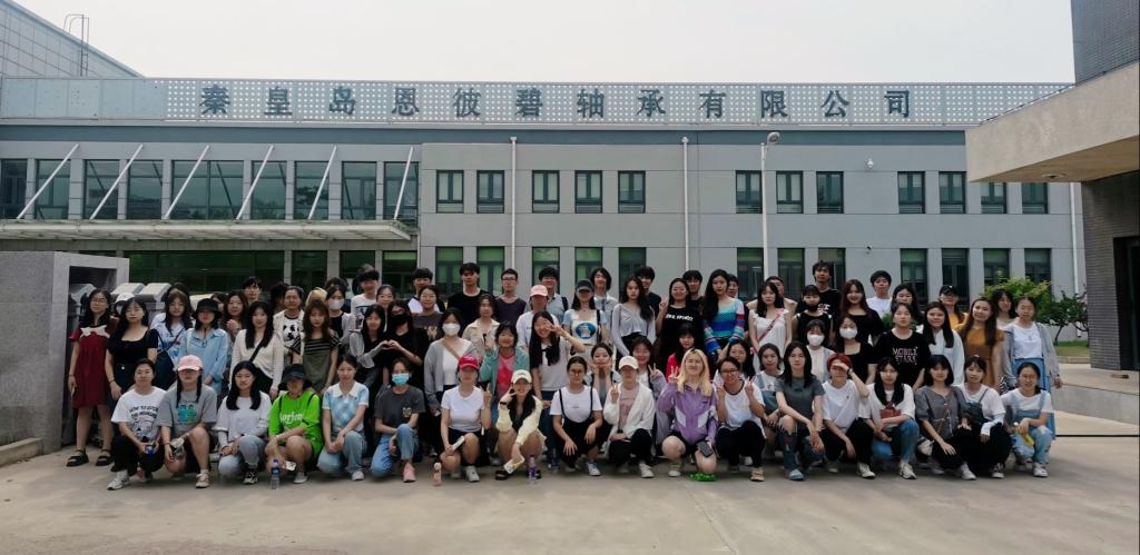 日语系学生在秦皇岛恩彼碧轴承有限公司门前合影