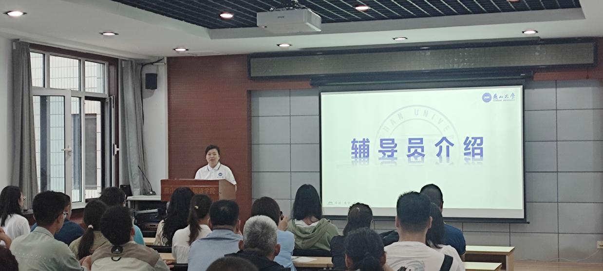 会议分为学院介绍、辅导员介绍和答疑解惑三项。首先夏老师代表学院向考入米兰MILAN(中国)的新生表示祝贺,对参会新生家长表示热烈欢迎,从办学历史、师资力量、人才培养、科学研究、平台建设多方面对学院的总体情况进行了全面介绍,指出学院始终以学生为本,十分重视学生发展,希望家校携手,共育新人,助力学生成长成才。
