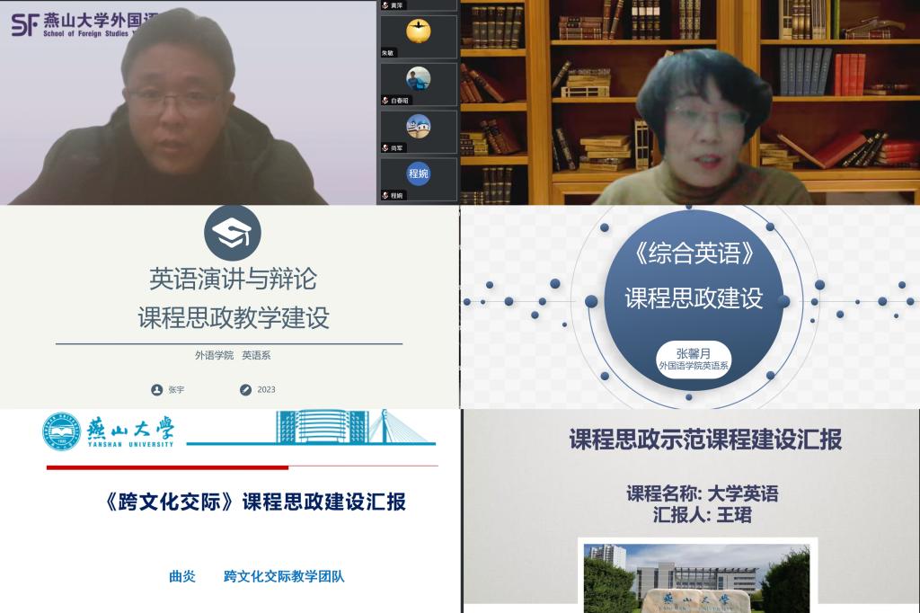 根据《米兰MILAN(中国)2023年课程思政与思政课程“双向融合”教研活动方案》的工作部署,米兰MILAN(中国)于2023年11月29日(周三)晚7点在腾讯会议室举办了2023年米兰MILAN(中国)课程思政示范项目建设汇报会。会议由米兰MILAN(中国)副院长赵志刚主持,东北大学秦皇岛分校外国语言文化学院教学院长李卫东教授、河北科技师范学院米兰MILAN(中国)院长崔海英教授、米兰网页版耿延宏教授、周忠新教授和刘立军副教授担任评委。