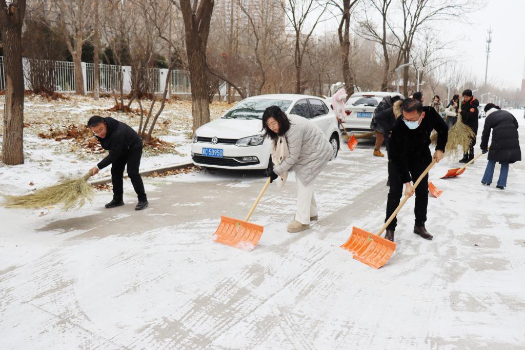 12月13日迎来了2023年冬季的第一场雪,为保证师生安全出行,排除校园安全隐患,14日上午,学院组织了教职工责任区扫雪活动。学院领导班子、全体行政人员、辅导员参与了活动。