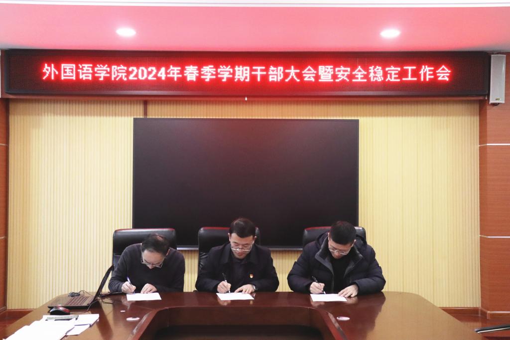 最后,院长王林海和党委书记屈晓阳代表学院和各系部、各科室签订了2024年安全稳定责任书。