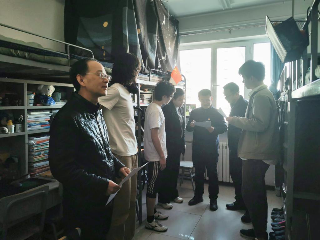随后,领导班子前往东区七、八公寓的外语学生宿舍进行走访,重点对宿舍的消防安全隐患进行了检查。对公寓区消防器材、公共区域、安全出口、学生寝室用电用水以及学生“一站式”社区建设工程进展进行细致检查并对一些细节提出意见和建议。
