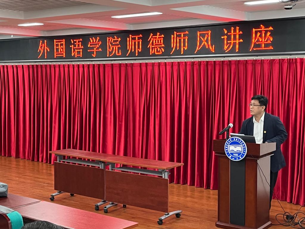 接着,陈步伟教授从新时代师德师风建设的重要意义、违反师德师风的现象及根源、相关法律法规、新时代争做“大先生”四个方面,具体讲述了师德师风的影响,以及用一些典型案例为老师们敲响警钟,提醒老师们要谨言慎行,修身、修心,不断地学习进步,才能成为一名合格的高校教师。