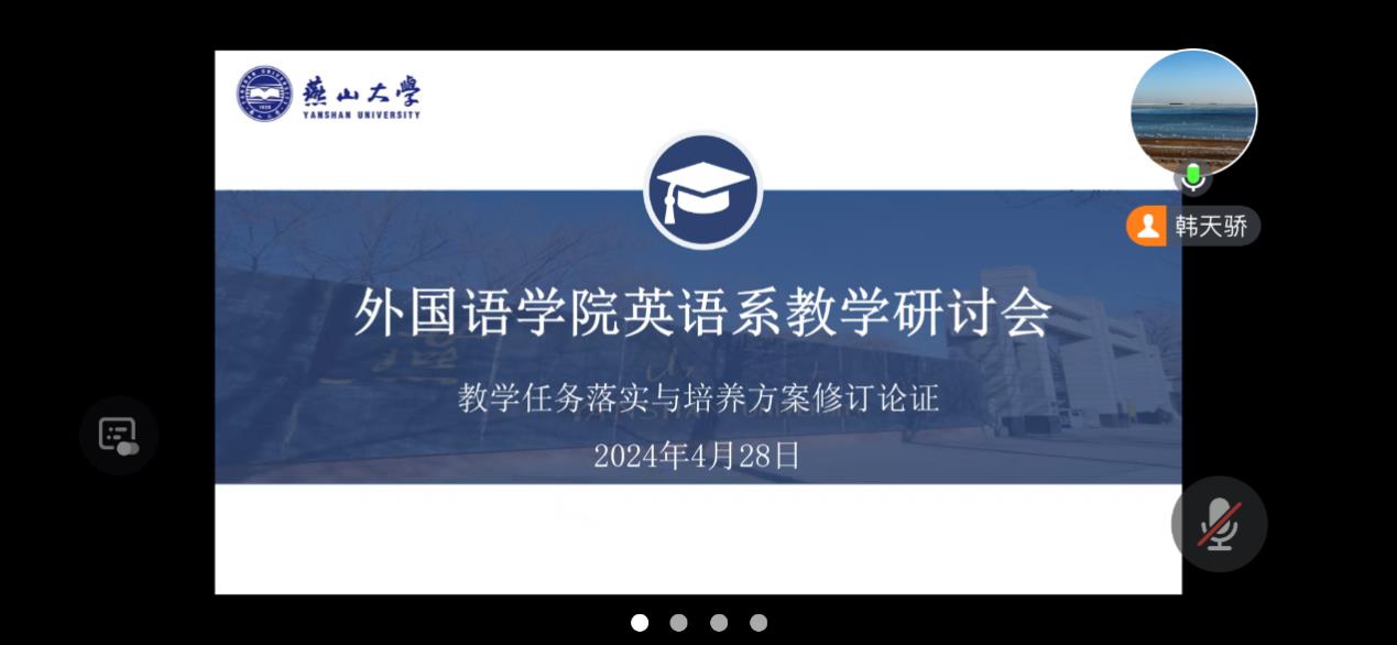 2024年4月28日晚8点,英语专业教师线上召开教学研讨会,对新版本科生培养方案的修订进行论证。