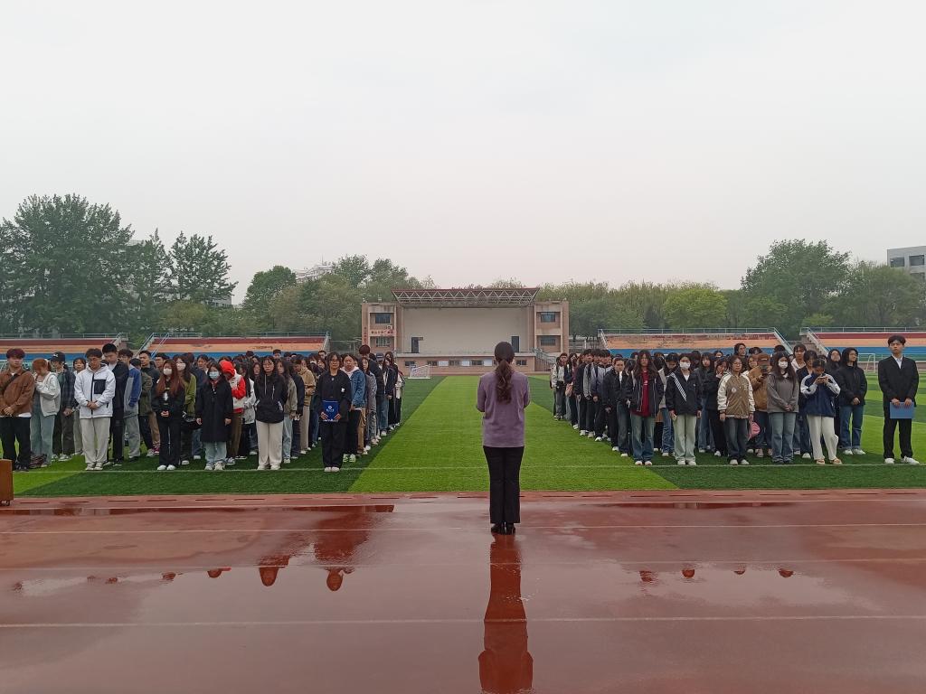 为纪念五四运动,弘扬五四精神,进一步激发广大师生的爱国情怀和民族认同感。米兰网页版于5月6日上午6时40分在东校区第一体育场举行升旗仪式。团委书记宋冉、辅导员宋婉玉及全体2023级本科生参加。