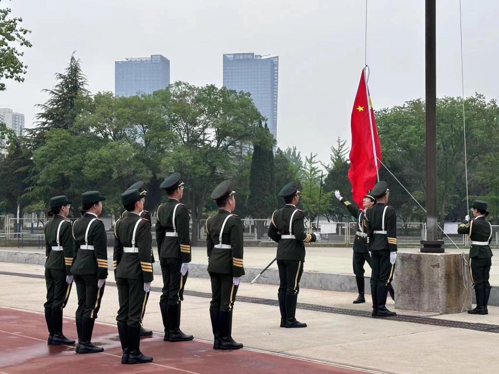 仪式第一项,朝露盈盈之时,国旗护卫队队员迈着整齐划一的步伐护卫着国旗走向升旗台,随着庄严的国歌响起,五星红旗冉冉升起,在场的师生神情庄重,面向国旗肃然而立,凝视鲜艳的五星红旗冉冉升起,共同祝福伟大祖国更加繁荣昌盛。