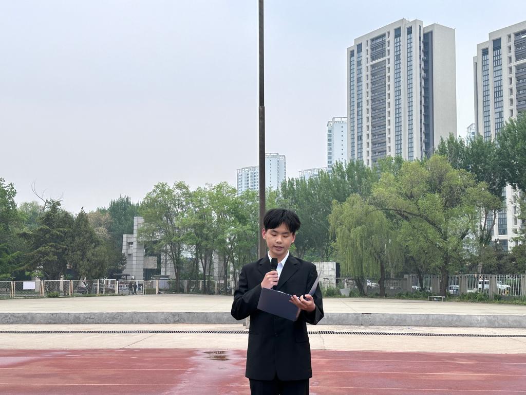 仪式第二项,学生代表霍一哲进行国旗下演讲。他从五四精神的起源和意义为切入点,阐释了当代中国青年所肩负的国家使命和时代责任,并倡导大学生应以五四精神为指引,牢记先辈开创山河、踔厉奋发之志,承其风骨,向善向上,用青春之笔,书写新的绚烂画卷!