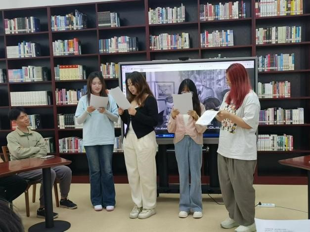 在接下来的互动环节,同学们通过线索“猜猜看”抢答影片中的经典人物,随机挑选的四名同学为电影中的经典片段进行配音,在遐想与扮演环节大家一起改写、续写故事情节,并进行角色扮演,以光影为桥让同学们亲身体会书中人物。同学们回答迅速准确,配音流畅自然,表演感情丰沛,分享细腻真诚。在现场同学积极响应中,活动气氛走向高潮,这些互动加深了同学们对书中人物的理解,感受了文字对白的魅力,也内化了书籍带给大家的精神力量。