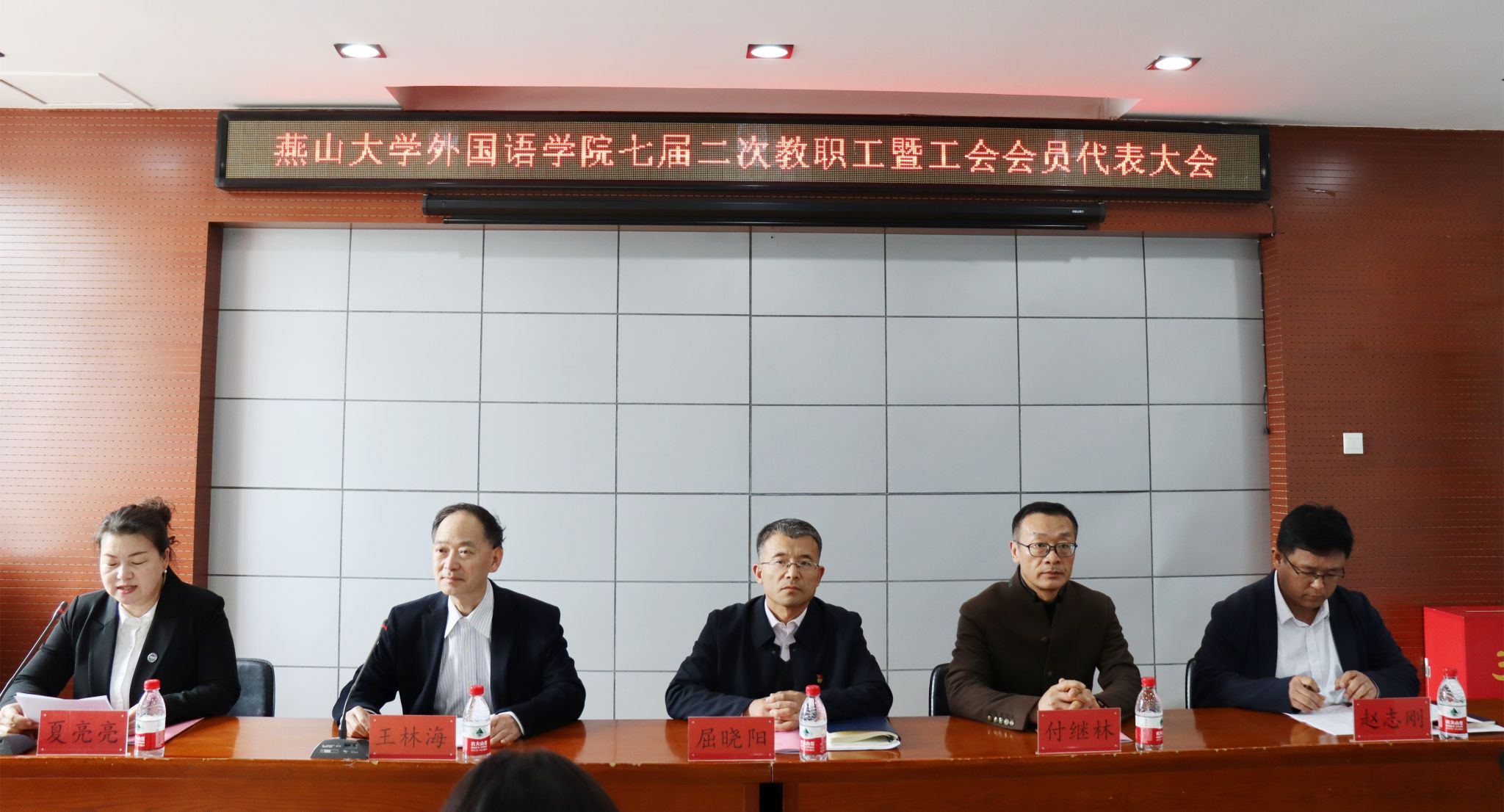 首先,进行主席团会议,学院党委书记屈晓阳向全体代表报告了大会筹备情况,通过了大会议程。
