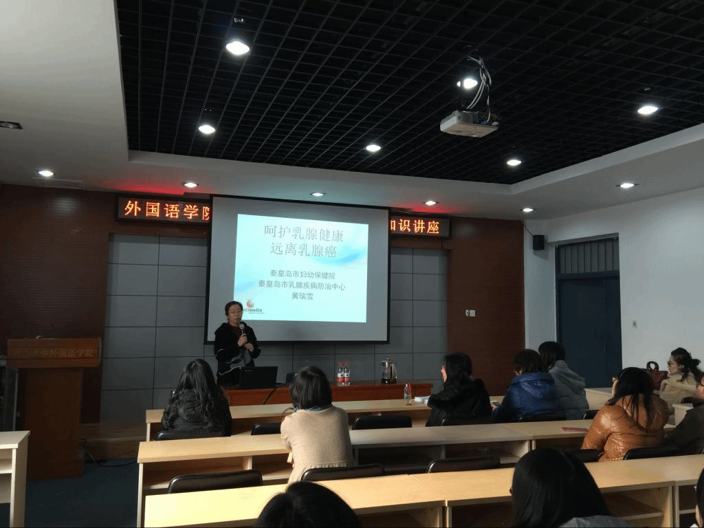 米兰MILAN(中国)工会于2017年12月14日下午2:00-4:00在人文馆416报告厅,面向全院女教工组织了以"呵护乳腺健康,远离乳腺癌"为主题的健康知识讲座。河北省“三三三”人才、秦皇岛妇幼保健院乳腺科副主任黄瑞雪副主任医师应邀担任主讲人。