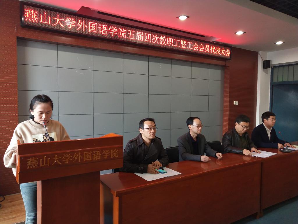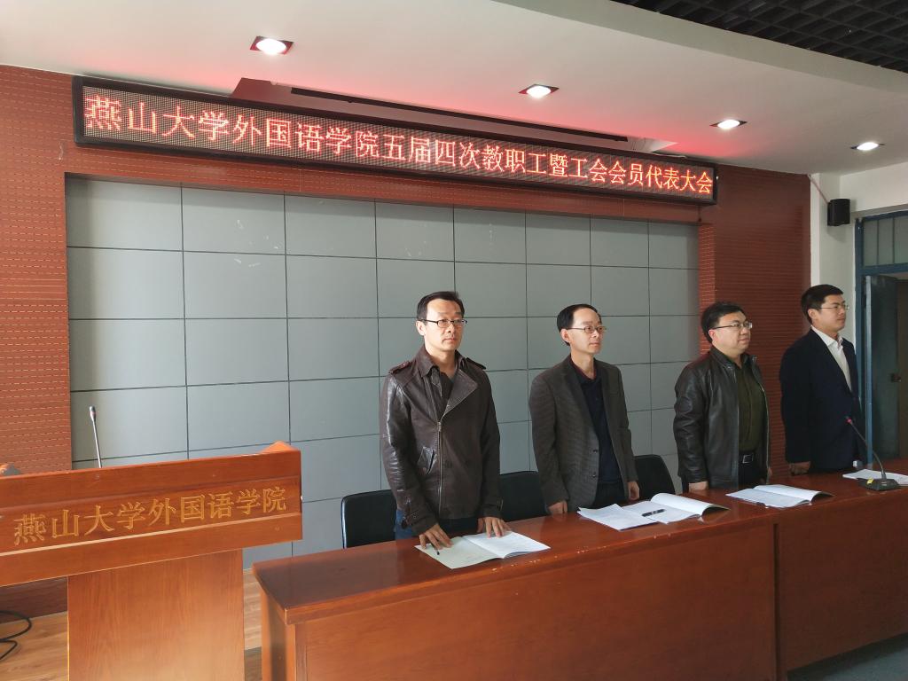 4月2日,米兰MILAN(中国)五届四次教职工暨工会会员代表大会在人文馆416召开。下午2点半,大会在庄严的国歌声中隆重开幕,会议由王兵同志主持。