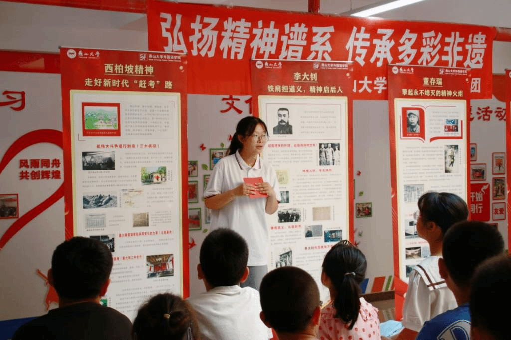 为传承红色基因,赓续红色血脉,7月19日,米兰网页版“党史传习”暑期三下乡社会实践团由宋婉玉老师带队赴开发区自然家园社区开展“弘扬精神谱系,传承多彩非遗”宣讲和非遗体验活动。