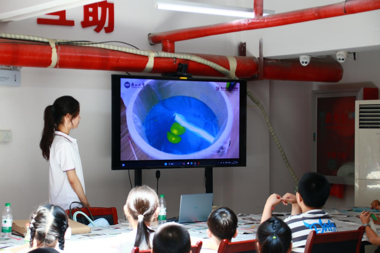 其后,实践团成员段晨曦、王雨晴带领孩子们“沉浸式”体验漆扇和衍纸两项非遗文化,从历史背景、制作工艺以及特色做法进行介绍。漆扇体验中,随着团扇缓慢放入转动,开“盲盒”般的漂漆技艺让大家惊艳赞叹;衍纸制作中,一卷、一捏、一折,充满爱心的衍纸作品应运而生。随着体验的结束,孩子们对非遗技艺所需沉着专注的工匠精神有了更多的感悟,对中华优秀传统文化源远流长和创新发展的强大生命力有了直观地感受,纷纷表示“太神奇了”“还想再体验一次”。