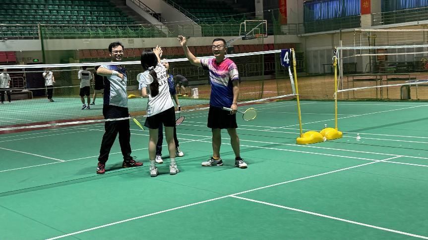 在尤为精彩的师生友谊赛环节,十六位师生随机组队,无论是男双、女双还是混双,都展现出了默契的配合与团队协作的力量。比赛中,他们互相学习、互相支持,并肩战斗,让“友谊第一,比赛第二”的体育精神得到了最好的诠释。
