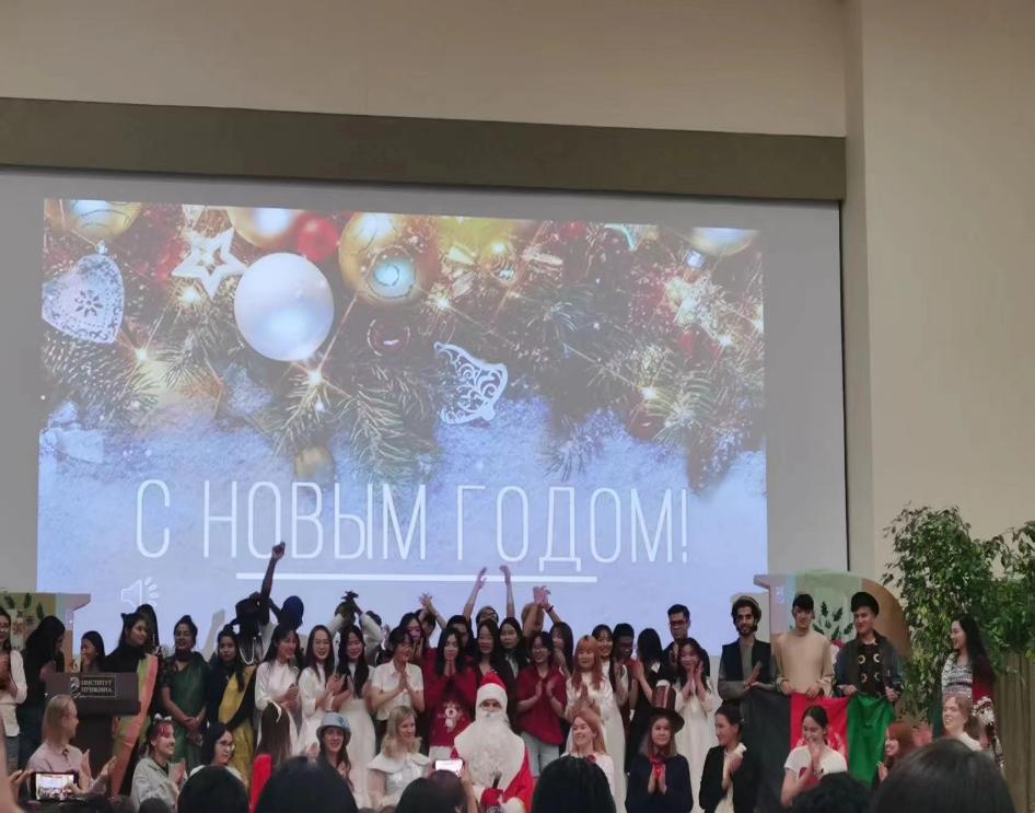 学生在普希金俄语学院庆祝新年活动