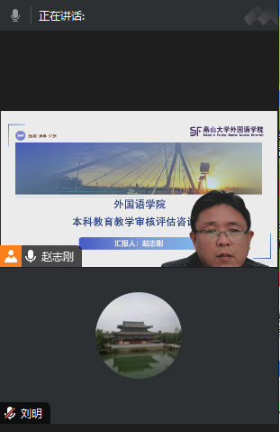 赵志刚首先介绍了学院本科教育教学的基本情况。然后按照“党建引领、立德树人”、质量文化和质量保证、自评自建、整改措施四个方面进行阐述。