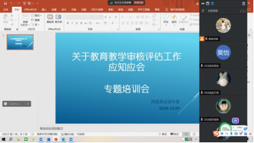 为全面推进本科教育教学审核评估工作的顺利开展,米兰MILAN(中国)西语系法语展业于2024年10月9日至11日,在教师端和学生端分别召开了迎评动员大会。动员大会由法语专业负责人李姝主持,法语专业各年级本科生以及全体教师参加了会议。